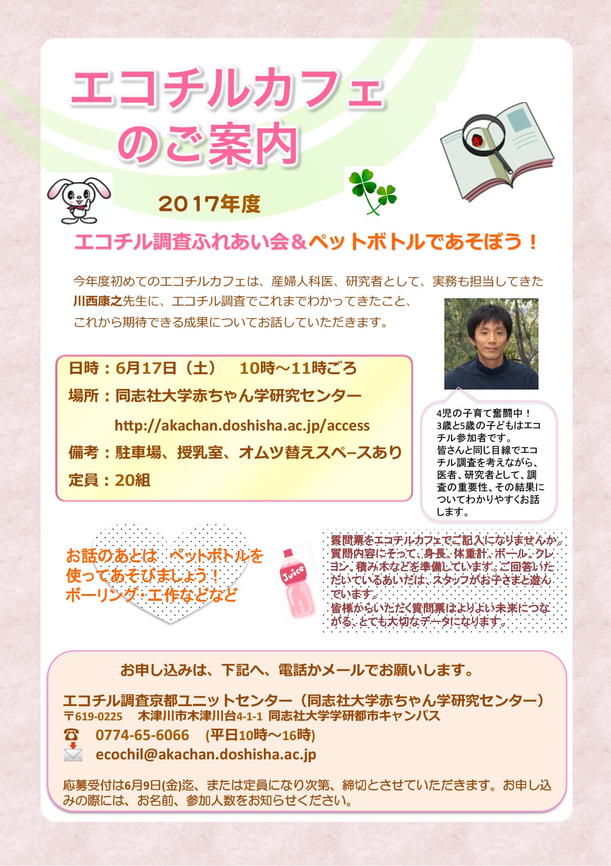 今年度最初のエコチルカフェ「エコチル調査ふれあい会&ペットボトルであそぼう!」を開催します。