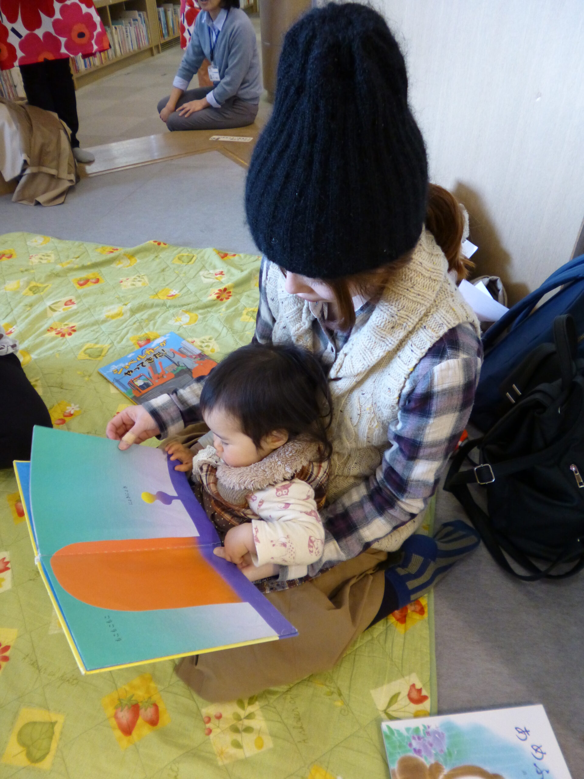 図書館の方がご紹介くださった絵本を、早速楽しむ親子も。
