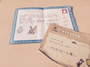 「サンタクロースさんへ ぼくは、おかあさんのおてつだいをしています。だから、ポケモンのカードがほしいです。がんばります。フィンランドから、にっぽんはとおいのできをつけてきてください。」