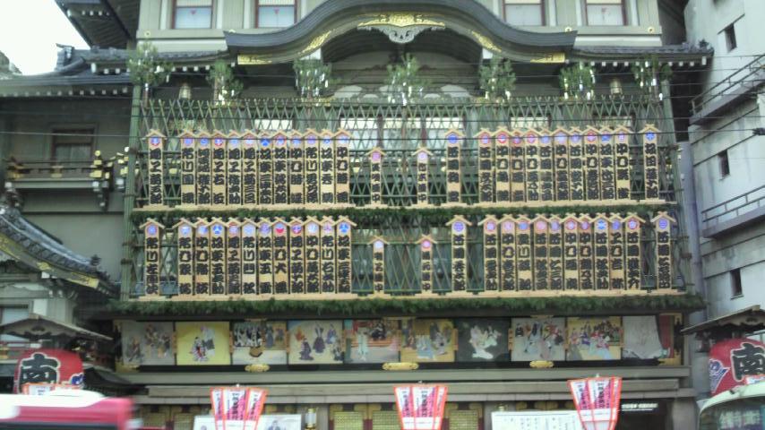写真は、京都の歳末の風物詩になっている南座の「まねき」です。 11月末から年末まで行われる顔見世興行の歌舞伎に出演する俳優さんの名前が 出入り口の上部に掲げられます。