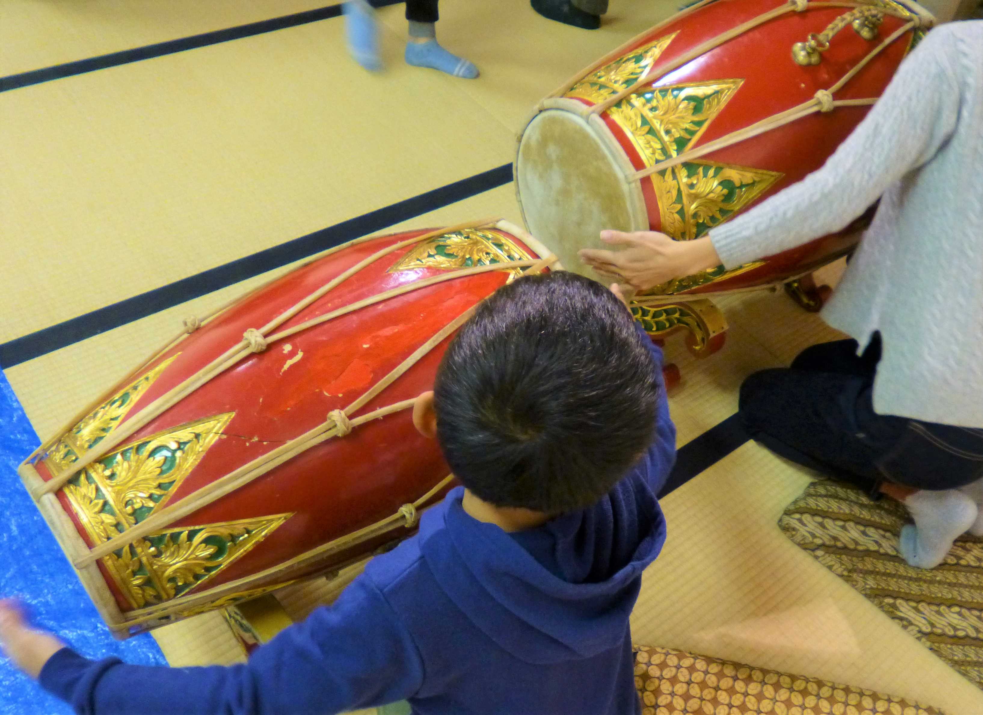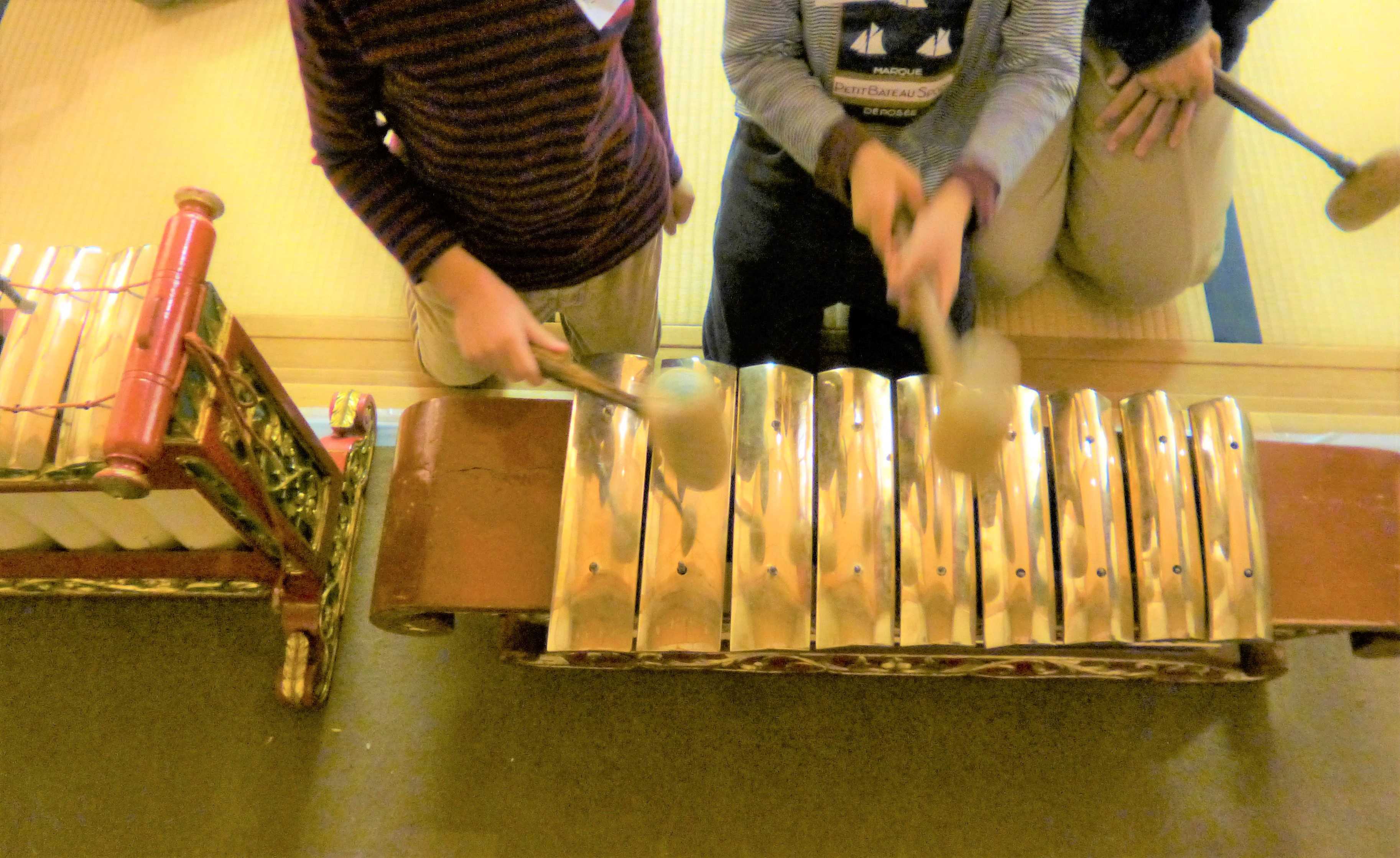 京都文化芸術会館の和室には、めったに目にすることのないインドネシアの楽器(ガムラン)や人形(ワヤン)が所狭しと並んでいます。