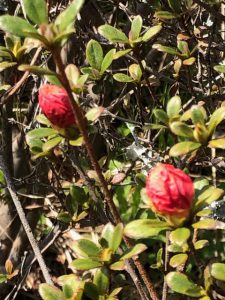 桜の開花を待ち遠しく見上げていますが、まだ茶色い地面に小さな春を見つけました。