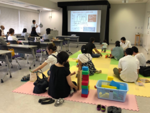 座談会の間、お子さんは、《泉のたまご》さんによるおはなし会を聞いたり、巨大迷路に挑戦したり、魚つりゲームや輪なげなどをして楽しみました。