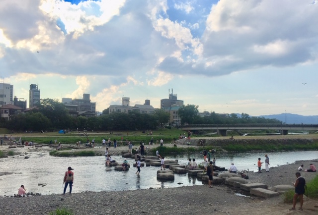 涼をもとめて、鴨川には大勢の人が・・・