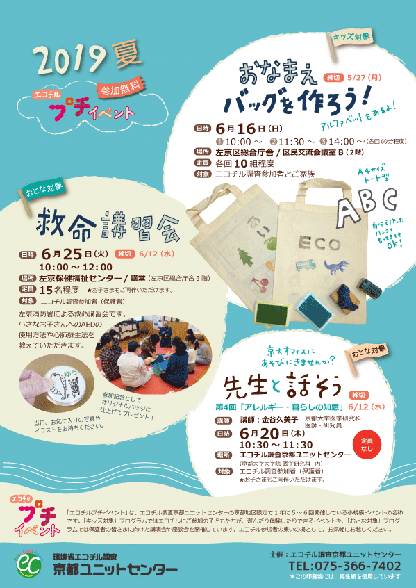 ★夏のプチイベントへのお申込み方法等詳細は、チラシをご覧ください。エコチルフェスタのご案内と同封して送付済です。